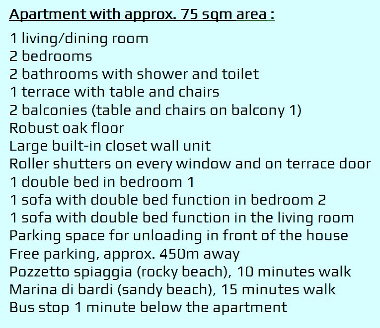 Werner and Martina are very hospitable landlords. They know Italy and the management of holiday apartments very well. They will be happy to advise and assist you on all questions. English, German and Italian spoken.