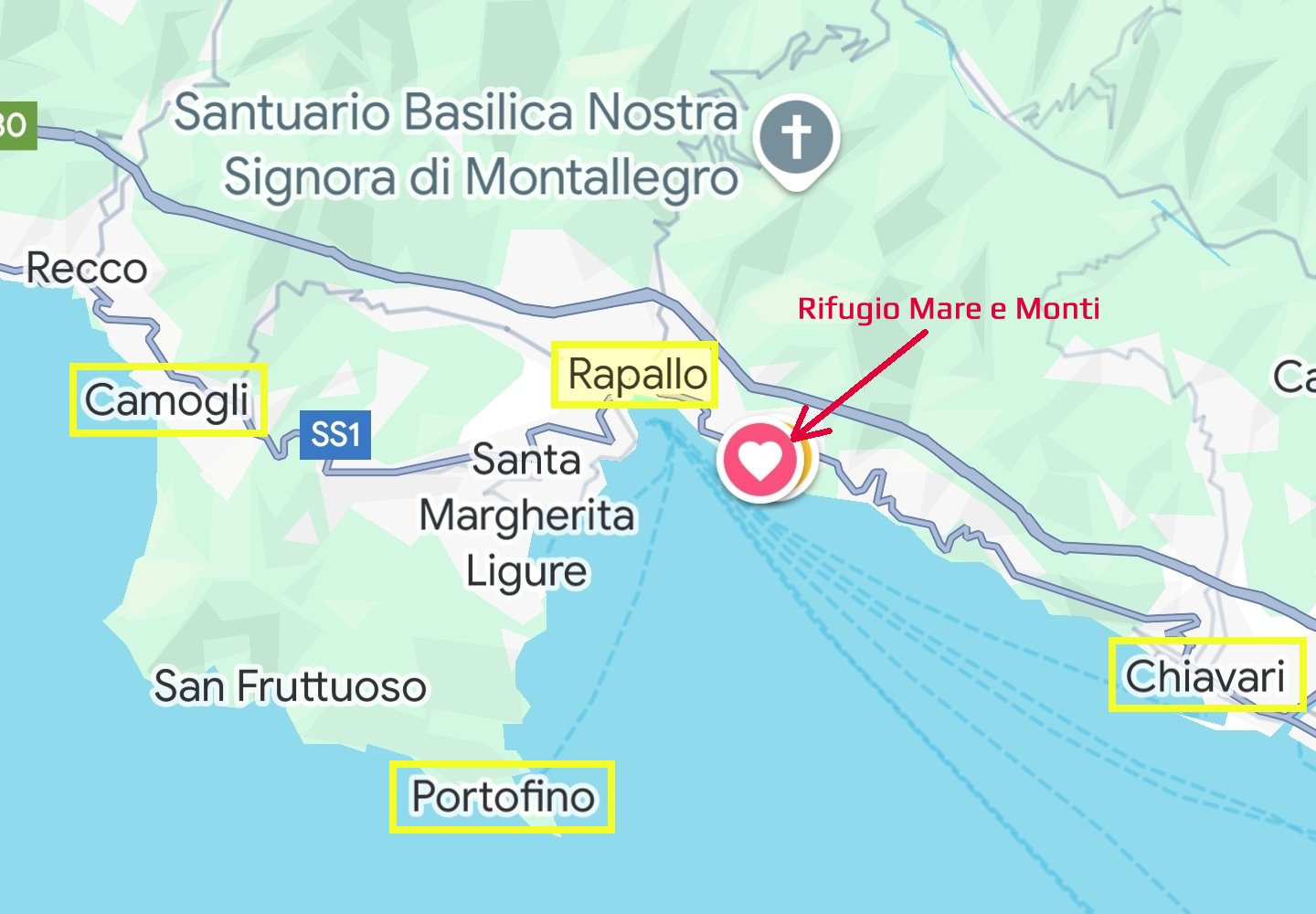 The Rifugio mare e monti is just under 2 km southeast of Rapallo.